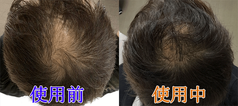 最初は、なかなか変化は現れなかったが、半年程たつと生え際に、うぶ毛が生えはじめ、一年程ではっきりと生え際が以前の状態に戻りつつあるのを実感できた。二年たった今では、ほぼ以前の生え際のラインにまで回復している。